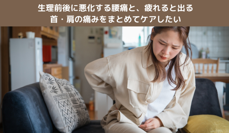 生理前後に悪化する腰痛と、疲れると出る首・肩の痛みをまとめてケアしたい